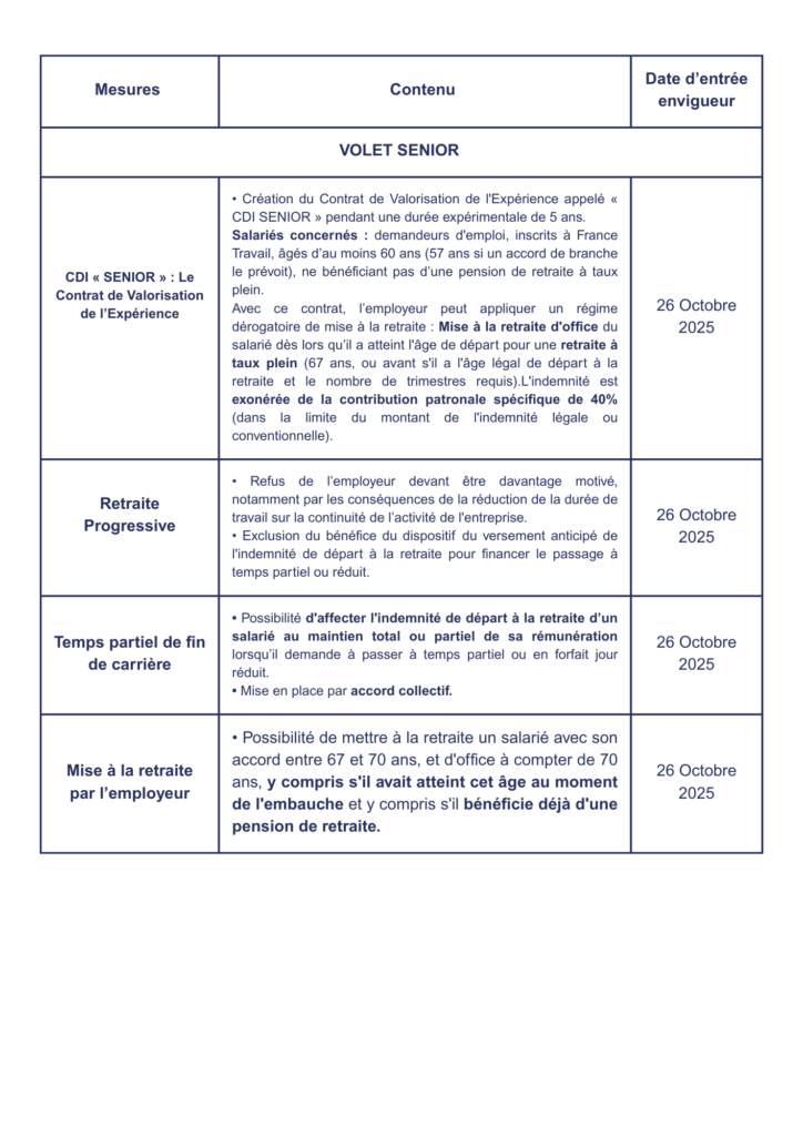 La loi n°2025-989 du 24 octobre 2025 « portant transposition des accords nationaux interprofessionnels en faveur de l’emploi des salariés expérimentés et relatif à l’évolution du dialogue social » a été publiée au journal officiel le 25 octobre 2025. Elle comporte de nombreuses dispositions portant sur l’emploi des seniors, sur les entretiens professionnels et sur le dialogue social.